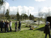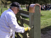 Ihre Idee wurde sofort von der Utholm-Schule, dem Hort, der Kindertagesstätte und der betreuten Grundschule aufgegriffen und hatte nach der ersten Vorstellung des Projektes gleich viele Förderer. Auch Meinolf Hammerschmidt war begeistert. Neben Spalierobst will er über 30 Obstbäume auf dem von der Gemeinde zur Verfügung gestellten Gelände zwischen der Utholm-Sporthalle und der Eiderstedter Straße pflanzen. Inzwischen sind die von Mario Voss ausgeführten Erdbewegungsarbeiten, die Drainage des Geländes, das Ausbaggern eines Teiches und der durch den Erdaushub entstandene Erdwall fertig. Ebenso wurde der Wildschutzzaun um das Gelände herum von Christian Heldt, Bauhof der Gemeinde, angebracht. Zwei Eiderstedter Hecktore sind ebenfalls schon von den „Holzbearbeitungsrentnern“ der AG-Ortschronik aufgestellt und bekommen nun einen ordentlichen Anstrich.
