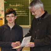 Zum achten Mal kam Roland König, Kreisfachberater Verkehrserziehung beim Schulamt Nordfriesland, in die Förderklasse der Utholm-Schule und überbrachte die Urkunde vom Minister für Bildung und Kultur für hervorragende Leistungen in Praxis und Theorie beim Verkehrserziehungswettbewerb 2011. Dennis Kock hatte die volle Punktzahl erreicht und nahm deshalb die Urkunde und das Geld stellvertretend entgegen. "Es macht Spaß, nach St. Peter zu kommen. Schon auf dem Schulhof wurde ich von Euch herzlich begrüßt.