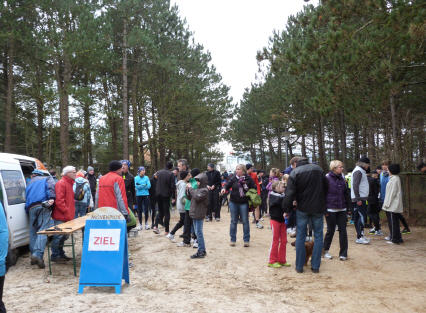 Kurz nach 14:00 Uhr begrüßte Jürgen Petersen das Teilnehmerfeld und gab die Regularien bekannt. Alle Kinder standen in der ersten Reihe. Der Start konnte bei bedecktem, aber trockenem Wetter erfolgen. Beim Einlauf erhielt jeder Teilnehmer auf Zuruf seine Laufzeit, die er dann in die ausliegenden Listen bei seinem Namen einzutragen hatte. Das war kein Problem, aber einige hatten länger als erwartet gebraucht. Trotz aller Angaben und vor allem, dass es ein Linkskurs sei, hatten sich doch einige „verlaufen“.