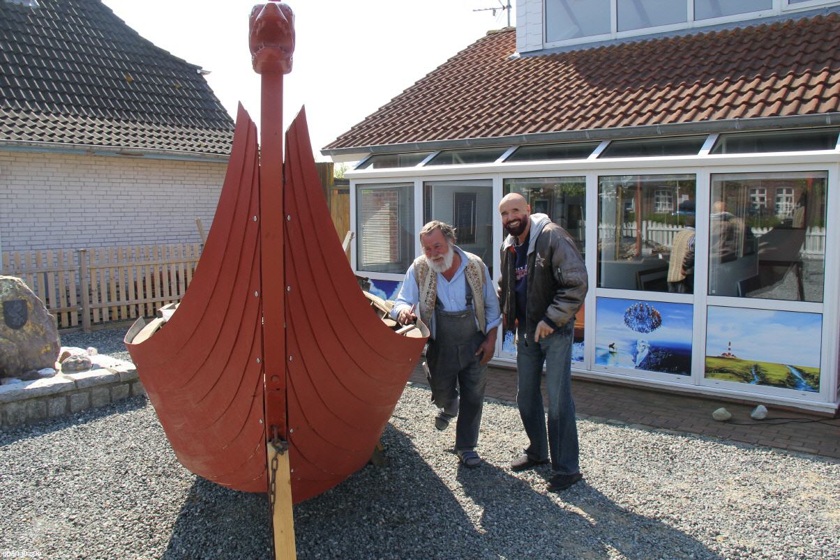 Freunde und Nachbarn schauen schon mal gerne vorbei und mancher hilft auch gern mit beim Verkleiden eines kleinen Bootes zu einem "echten" Wikingerboot.