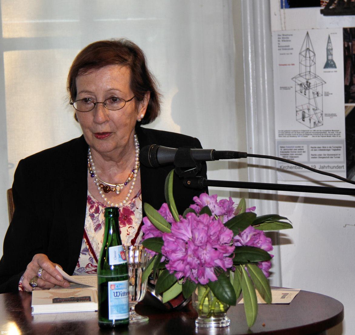 Kein weiterer Stuhl war mehr im Museum der Landschaft Eiderstedt unterzubringen, Gäste an der Abendkasse mussten abgewiesen werden. Das Klavier für die musikalische Begleitung stand eingeklemmt zwischen Terassenfenster und erster Reihe. Allerdings wurde es auch nicht gebraucht, wie die Organisatorin des Abends, Sigrid Haeder, zu Beginn den Zuhörern mitteilen musste. Die musikalische Begleitung fiel leider aus. Dafür wurde mit herzlichem Beifall die Autorin und ehemalige schleswig-holsteinische Ministerpräsidentin Heide Simonis begrüßt. Zunächst las sie aus ihrem Buch „Drei Rheintöchter“. Sie bezog ihre Zuhörer sofort mit der Frage ein, wann denn normalerweise nach dem Krieg der „Badetag“ war, freitags, wie ihre Schwestern meinten oder sonnabends, wie sie es in Erinnerung hatte. Die Beschreibungen ihrer Kindheit im rheinischen Bonn riefen Schmunzeln, Lachen hervor, denn die meisten Anwesenden hatten wohl ähnliches erlebt. Als Mädchen kein weißes Kommunionskleid zu bekommen, weil der Vater Protestant, die Mutter „nicht fromm, aber sehr katholisch“ war, dazu noch hochdeutsch sprechend, führte schon zu der Einsicht, dass sie damals „schlechte Karten“ hatte, wie sie mit viel Humor erzählte.