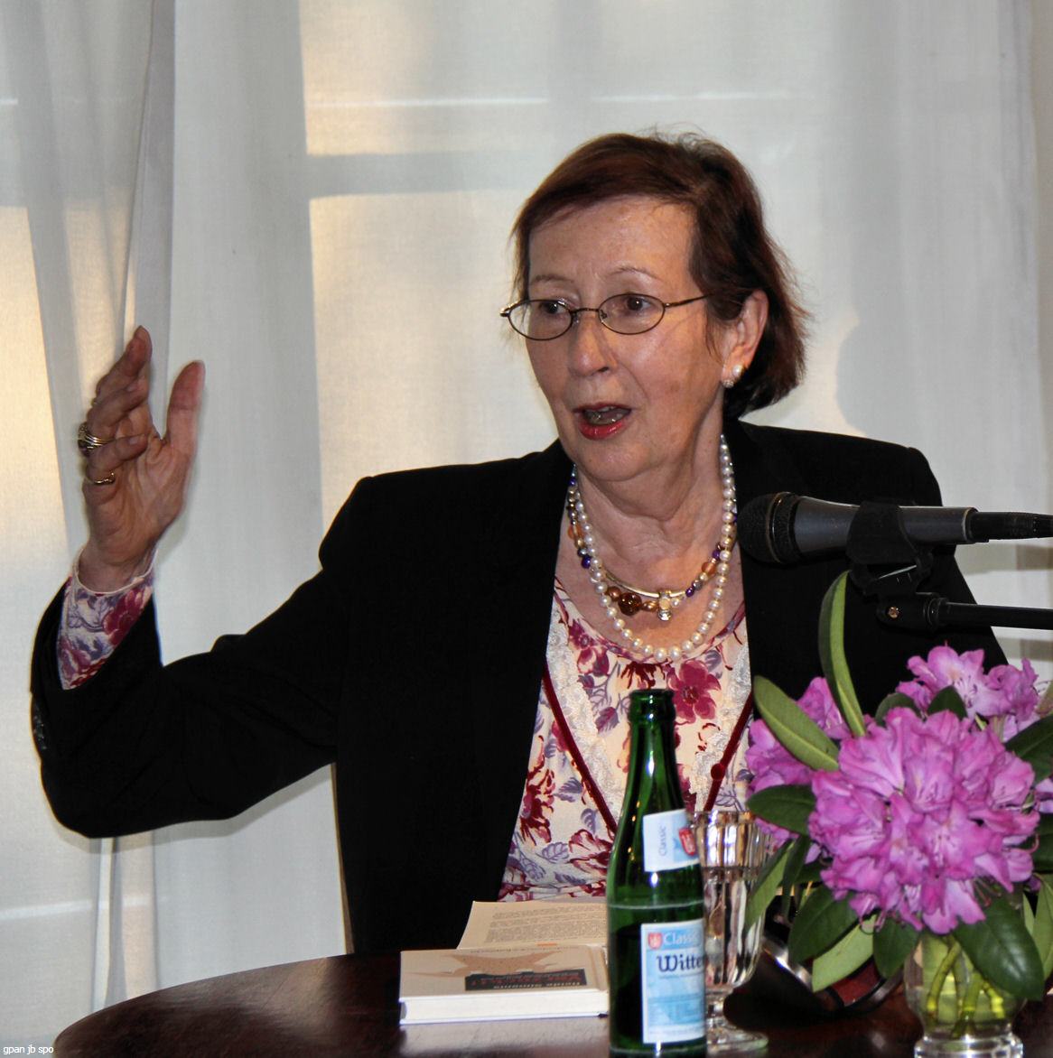 Den zweiten Teil ihres Vortrages beginnt Heide Simonis mit der Frage „Wie werd ich Millionär?“ aus ihrem neuesten Buch „Verzockt“. Antwort:“So alt können Sie gar nicht werden, um auch bei sparsamstem Leben von ihrem Einkommen…“ Und dann schildert sie, wie die deutsche Öffentlichkeit die schwere weltweite Finanz- und Wirtschaftskrise wahrgenommen hat. „Geld ist zum Gut gemacht worden!“ Ratingagenturen, die die Güte der Bankpapiere einstuften, versagten. Boni in Millionenhöhe wurden für Vertragsabschlüsse bezahlt, von denen man nicht sicher war, ob sie das halten werden, was sie versprachen. Und sie versprachen zu viel, was einige wussten. Die Blase platzte. Und wer bezahlte dafür? Viele Bankangestellte verloren ihren Arbeitsplatz und vor allem und letztendlich zahlte der Steuerzahler, denn der Staat sprang mit Milliarden zur Rettung der Banken ein. Das System sollte geändert werden, geschehen ist bis heute wenig, zu wenig. Die meisten Staaten waren schon verschuldet, durch die Bankenkrise stieg die Schuldenlast. Sollen die Länder mit den größten Schuldenlasten aus dem Euro ausscheiden? Heide Simonis warnt vor einem Zusammenbruch, der ganz besonders Deutschland als Exportnation schaden würde.