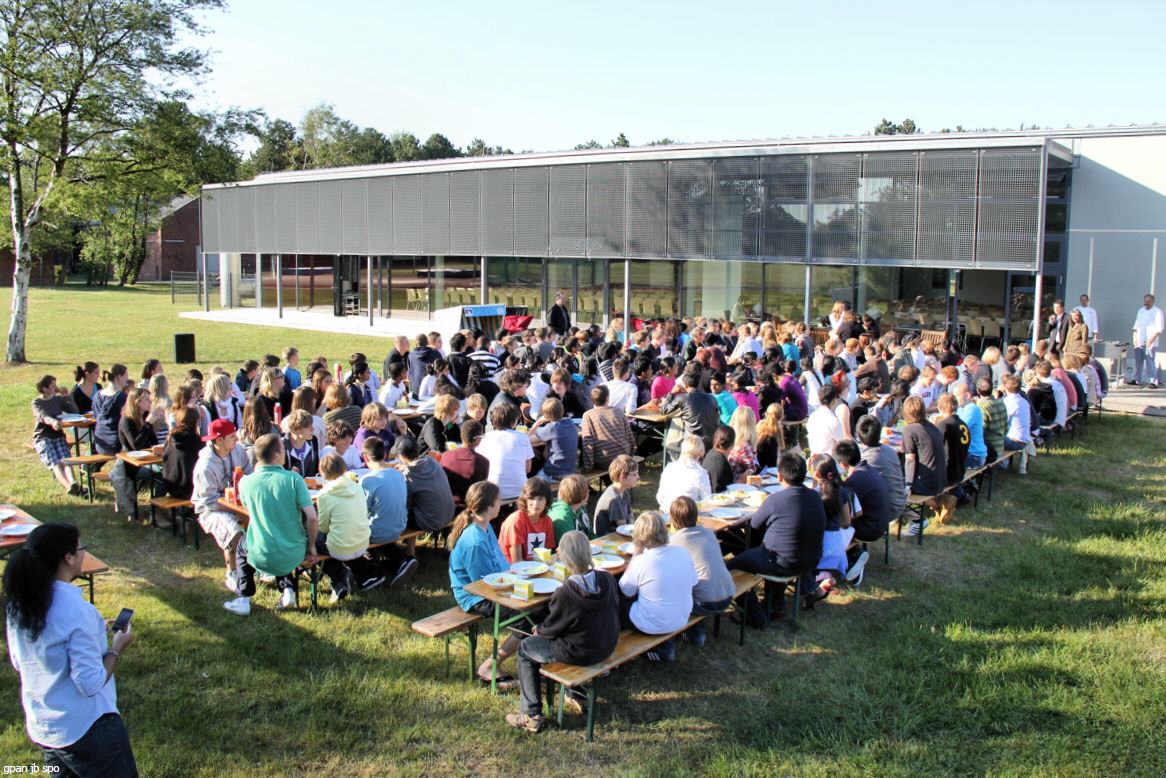 Unter diesem Motto hatten der pädagogische Leiter des Internats, Rüdiger Hoff, und die Leiterin des PASCH-Kursus vom Goethe Institut Hamburg, Christiane Günther, alle Internatler und 54 Mädchen und Jungen aus Indien und den Philippinen auf den Rasen vor der Mensa eingeladen. Drei Wochen, vom 8. bis 28.Mai, werden die Stipendiaten des PASCH-Programms in St. Peter-Ording bleiben. 2008 startete der damalige Bundesaußenminister Steinmeier die Initiative "Schulen: Partner der Zukunft" (Pasch). Ein Baustein des Projekts sind Sprachkurse für Schüler, die in ihren Heimatschulen bereits Deutsch lernen. Die Schüler erhalten Flug, Unterkunft und Sprachkurs kostenlos. Organisiert werden die Sprachkurse vom Goethe-Institut. Zum zweiten Mal wird der Jugendkurs während der Schulzeit durchgeführt. In vier Klassen unterrichten vier Lehrkräfte Deutsch als Fremdsprache nach Sprachniveau. Aber es sind auch noch vier weitere Betreuer für die Freizeit anwesend. Unterschiedlichen Ausflüge nach Hamburg, Flensburg, Tönning, Husum sind geplant sowie weitere Begegnungen in einem Tanzprojekt, bei Volleyballspielen und natürlich beim gemeinsamen Essen in der Mensa. So haben die jugendlichen Inder und Philippinen die Möglichkeit, sich auch außerhalb der Sprachstunden mit gleichaltrigen Mädchen und Jungen aus dem Internat auszutauschen und eventuell auch anzufreunden. Koch Matthias Greve steuert seinen Teil zum Gelingen des Projektes bei, in dem er während dieser Zeit in der Mensa auch verschiedene indische Gerichte anbietet wie „Tandoori chicken“ oder „Indisches Hack-Curry“. An diesem Abend rundeten erfrischende, alkoholfreie Cocktails aus JiM’s Bar das abendliche Essen und Beisammensein ab.