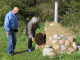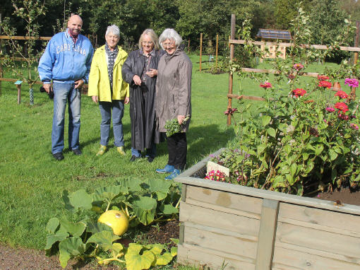 Künstler Erhard Schiel besuchte mit seiner Frau die Utholm-Schule, um sich die Streuobstwiese anzu sehen. Er war begeistert von der Größe der Anlage und der Vielfalt der Bäume, Sträucher und Objekte. Er versprach, die Idee der Streuobstwiese zeichnerisch darzustellen. Die Zeichnung soll dann auf Briefbögen, auf Plakaten zu sehen sein.