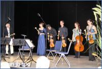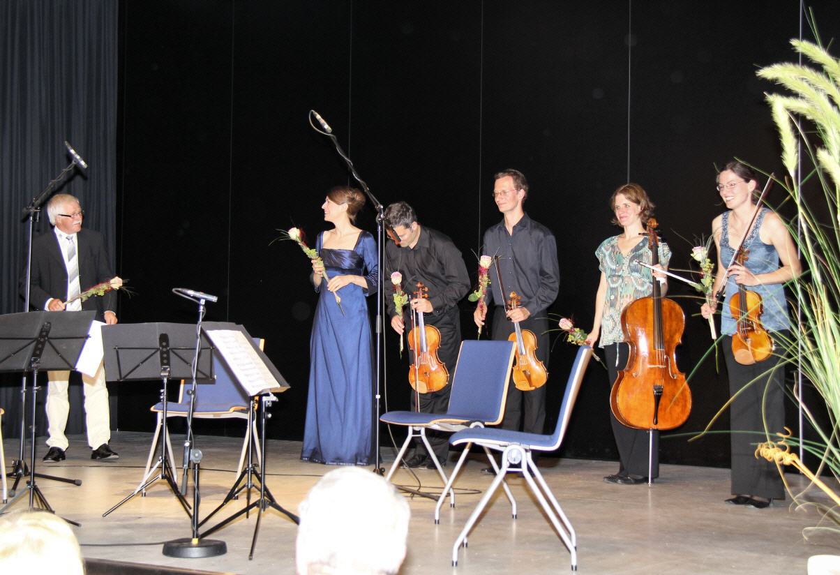 Die gute Akustik im Dünenhus trug zum Gelingen bei, wie es auch schon die Premiere am Freitagabend zeigte. Die Mezzo-Sporanistin Katharina Kammerloher bezeichnete sich im Vorgespräch, das Marek Kalina in eleganter Weise mit den Künstlern führte, als nahezu fünfte Stimme des Tilia-Quartetts bei den Liedern von Hugo Wolf. Diese hatte Xaver Thoma, Komponist zeitgenössischer Musik, Bratschist und Musikpädagoge eigens für Streichquartett und Sopran bearbeitet. Mit ihrer angenehmen, raumfüllenden, klaren Stimme begeisterte Katharina Kammerloher im fein abgestimmten Zusammenspiel mit den Instrumenten die Zuhörer, besonders auch beim lyrischen Poemetto für Mezzosopran und Streichquartett von Respighi, das sie mit italienischem Text sang. Die Italienische Serenade für Streichquartett von Hugo Wolf, der wie Marek Kalina anmerkte, Italien so gut kannte, wie Karl May Amerika, wirkte in Teilen leicht tänzerisch und melodiös, erinnerte an eine Sehnsucht nach dem Süden. Das exzellente Spiel des Tilia-Quartetts zeigte sich auch beim heiteren, irgendwie aber auch melancholischem Streichquartett in e-Moll von Guiseppe Verdi mit seinem furiosen Schluss. Die begeisterten Zuhörer ließen die Musiker und die Sängerin nicht ohne Zugabe von der Bühne. „Das war Musik vom Allerfeinsten!“ meinte Werner Domann, Veranstaltungsleiter der Tourismuszentrale und erhielt Unterstützung durch Hans-Jürgen Krähe, ehemaliger Studiendirektor am hiesigen Gymnasium:“Wie haben Sie nur diese Musiker hergeholt? Ich finde das großartig! Danke!“