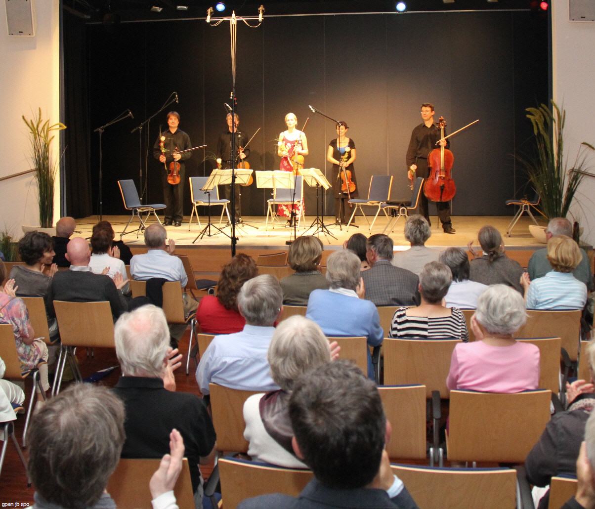 „Hervorragende Konzerte! Bin von der Auswahl und der Qualität begeistert!“ Volker Dohm aus Aachen, selber Mitglied eines Amateurstreichquartetts hat seinen Urlaub auf diesen Termin gelegt. Er ist zum ersten Mal in St. Peter-Ording und extra wegen der ersten Westküsten-Kammermusiktage angereist. Für ihn hat sich die Qualität der Konzerte von Abend zu Abend und zum Sonntagmorgen hin gesteigert. Besonders hat ihm, aber offensichtlich auch den anderen Zuhörern bei der Abschlussmatinée das vierte Streichquartett des Ungarn Bela Bartok gefallen. Schon in der Ankündigung als „virtuoser Höhepunkt der Matinée bezeichnet, gelang dem Jacob-Stainer-Ensemble, bestehend aus Solisten der Sächsischen Staatskapelle und der Philharmonie Dresden, ein furioser, Emotionen wachrufender, technisch brillanter Auftritt. Er riss das Publikum zu lang anhaltendem, begeistertem Applaus hin. In dem vorab von dem kenntnisreichen Journalisten Marek Kalina geführten Gespräch mit den Künstlern, wurde schon deutlich, für wie schwierig dieses Streichquartett gehalten wurde. Christina Biwank, Solobratschistin, bezeichnete die Bartok Musik als „eng aneinandergesetzt“. Dadurch können schnell falsche Akkorde gesetzt sein und die höre man. Und – „die Taktstriche haben da einfach nichts verloren! Man müsse vielmehr ins von Bartok nachempfundene Ungarisch-Musikalische eintauchen.“ Dies gelang dem Ensemble mit Henrik Woll und Paige Kearl, Violine, Christina Biwank , Viola und Simon Kalbhenn, Violoncello, ohne Zweifel genauso wie das „Allegro assai“ des Quartettsatzes c-Moll des Opus posthum von Franz Schubert, das gleich zu Beginn klanglich schon fast orchestral, mit seinen zum Teil vertrauten Melodien sowie seiner Dramatik dennoch geschlossen wirkte. Aus dem Quartett wurde mit der zweiten Bratsche, Holger Grohs, ein Quintett, das zum Schluss das Streichquintett g-Moll KV 516 von Amadeus Mozart spielte. Ein krönender Abschluss!