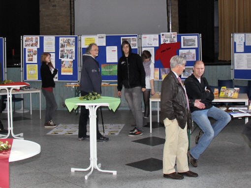 Schülerinnen und Schüler der Nordseeschule backten Waffeln, und Schüler des Berufsfeldes HotelGaststätten boten Blechkuchen zum Verkauf an.- Träger dieser seit Anfang September in Garding auf Initiative der Agentur für Arbeit existierenden berufsvorbereitenden Maßnahme ist das TSBW in Kooperation mit dem Amt Eiderstedt.- Vom Jugenderholungsdorf gab es gesunde Snacks und man konnte die „Wasserkuh“ melken. Wegen des Wetters hatte man kurzerhand die Gymnastikhalle geräumt und sich mit den Ständen im Eingangsbereich präsentiert.