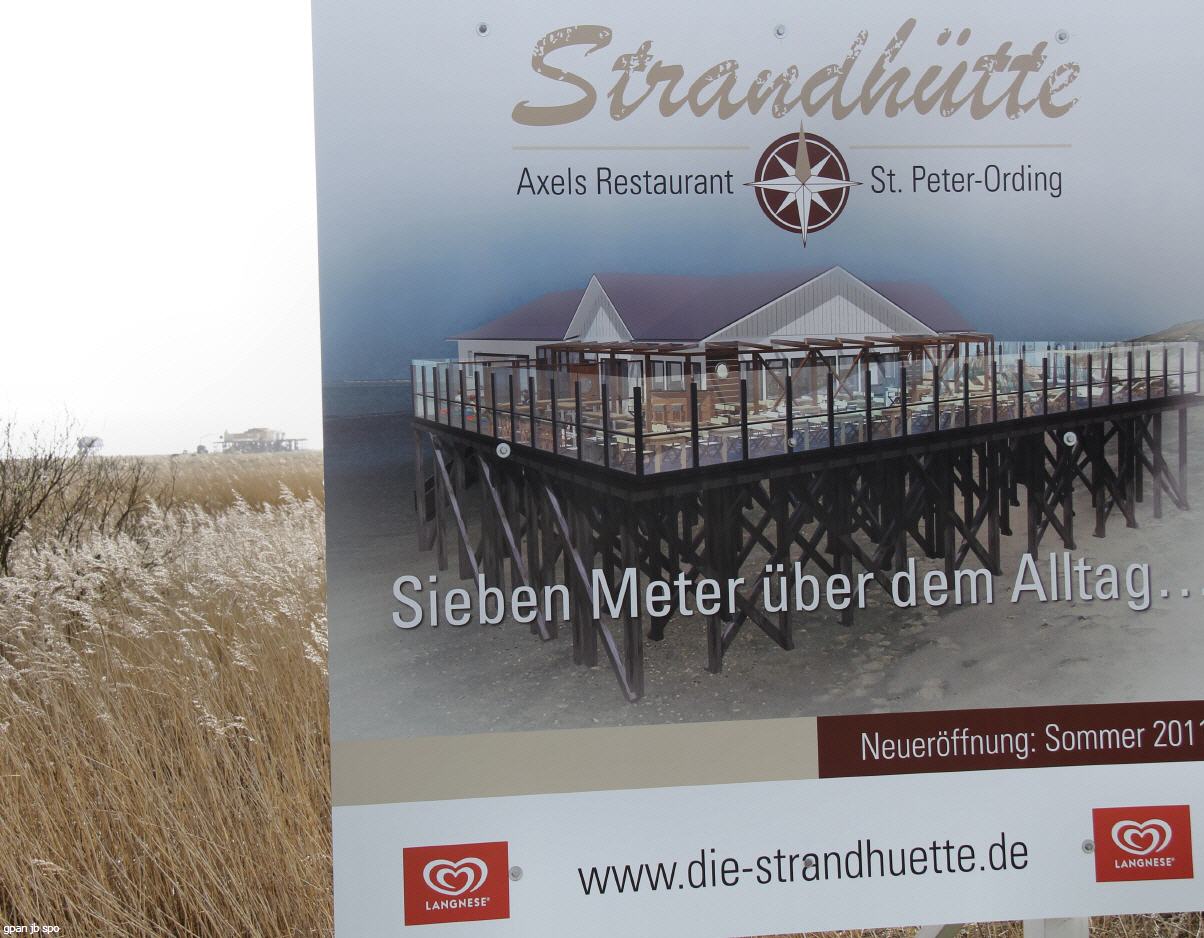Beim Erweiterungsbau für den Pfahlbau am Südstrand kann man so allmählich die Ausmaße erkennen.