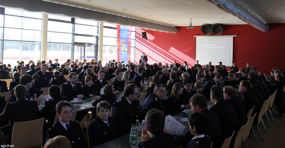 Björn Hufsky, Kreisjugendfeuerwehrwart, kennzeichnete die wichtigen Funktionen der Jugendfeuerwehr. Es gelte, „den 136 Freiwilligen Feuerwehren des Kreises genügend junge Kameradinnen und Kameraden aus unseren derzeit 54 Jugendfeuerwehren zu übergeben, um die Zukunft des ehrenamtlichen Brandschutzes in unseren Städten und Gemeinden zu sichern.“ Im Jahr 2010 waren es 1174 Jugendliche, davon 218 Mädchen, die in 54 Jugendwehren im Kreis Nordfriesland ausgebildet wurden. Es sei eine besondere Herausforderung, junge Menschen für ein freiwilliges Engagement zu begeistern. Das sei nicht einfach, denn es habe auch Austritte mit Begründungen wie „keine Lust mehr“ gegeben, während andere Beweggründe wie „Schul- und Berufsausbildung“ nachvollziehbar seien. Sorge mache ihm derzeit die Entwicklung der Ganztagsschulen. Die Betreuer und Ausbilder stehen im Arbeitsleben und hätten kaum Zeit, ihren Übungsdienst auf den Nachmittag zu legen. Um die Jugendwehren attraktiver zu machen, lag ihm die Umsetzung und Anerkennung der Truppmann Teil 2-Ausbildung sehr am Herzen. Weiter wurden 132 Flammen der Stufe eins, 62 der Stufe zwei und 7 der Stufe drei erworben, 112 Leistungsspangen verliehen. Zusammen mit den vielen Übungsstunden, Veranstaltungen, Freizeiten und Fahrten sei dies alles Grund genug, die öffentlichen Zuschüsse nicht zu kürzen.