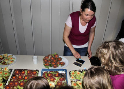Für die Lern- und Schulfreude ist nicht nur die Bewegung, sondern auch die gesunde Ernährung wichtig. Sie schafft die Voraussetzungen, dass die notwendigen Nährstoffe, Vitamine, Mineralstoffe und Spurenelemente dem Körper zugeführt werden können, um geistig und körperlich fit zu sein. Seit Jahren wird deshalb an der Utholm-Schule der „Ernährungsführerschein“ durchgeführt. Den Schülern wird im praktischen Unterricht vermittelt, was eine gesunde, ausgewogene Ernährung beinhaltet. So hatten die Eltern vom Schulkiosk für den Vormittag ein reichhaltiges Angebot an kleinen Häppchen für die jungen Sportlerinnen und Sportler zusammengestellt.