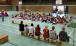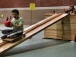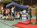 Die „Silbermöven“, eine Kindergruppe aus verschiedenen Klassen der Grundschule mit Förderzentrum, hat die Aufgabe, eine große Matte auf zwei Barren zu hieven. Sofort laufen ein paar von ihnen unter die Matte und unterstützen die anderen. Jetzt müssen nur noch alle auf die Matte klettern und sich hinsetzen. Doch einer schafft es einfach nicht. Zwei Mädchen ziehen hilfsbereit an seinen Armen, es reicht aber nicht. Da springt ein größerer Junge von der Matte und hebt den kleineren Jungen hoch. Es hat geklappt. Mit einem Satz ist der große Junge wieder auf der Matte, alle drauf. Nun dürfen alle wieder herunterrutschen und die Matte auf der anderen Seite der Barren ablegen. Dabei müssen die Kinder, die die Matte von unten gehalten haben, schnell nach außen laufen, um nicht unter der Matte „begraben“ zu werden. Als alle wieder auf der Matte sitzen, wird die Zeit gestoppt, tolle Zeit! Teamarbeit zahlt sich aus.