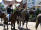 Danach begann das übliche Zeremoniell mit Anritt der Abordnungen zum Marktplatz, Aufstellung nach Anweisung durch den „Reitergeneral“ und Begrüßung durch Reimer Hennings vor den vielen versammelten Zuschauern. Es folgte der Ritt durchs Dorf über Eiderstedter Straße und Heedweg am Seniorenheim Edelweiß vorbei in die Dorfstraße zum Turnierplatz.