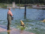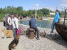 Peter Marke entfaltete später ein Banner, das auf das zwanzigjährige Bestehen des Westküstenparkes hinweist.