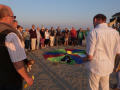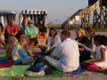 Begleitet von der Urlauberseelsorge kann der Gast in St. Peter-Ording auf vielfältige Art gemeinsam mit anderen seinen Glauben leben. So hatten sich dieses Mal 30 Menschen am Abend bei herrlichstem Sommerwetter am Südstrand eingefunden, um den Tag mit ökumenischen Sonnenuntergangsgedanken besinnlich ausklingen zu lassen.
