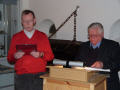 Claus Heitmann wies dann in seinem Jahresbericht ergänzend dazu auf die erfolgte Zusammenführung der Archive von Museum und Ortschronik hin und ging u.a. näher auf die handschriftliche, echte, gut erhaltene Urkunde von 1555 über die Kirchenordnung von St. Peter ein. Sie ist verfasst von Behrend von Horsten, dem ersten protestantischen Pastor. Seinen Namen weist eines der Kanzelfelder (1571) in der St. Peter-Kirche aus. Er berichtete weiter über die vielfältige Arbeit von Ingrid Bialek, Johanna Gerhorst und Marianne Hinze im Archiv, die Backtage des Backhaus-Teams, die Vorträge von Olaf Jensen und die Fertigstellung des Schipperhus mit Deichpforte, Stockenstieg und Fahrradständer. Sogar für die Seelen der Toten sei gesorgt durch den von Karl-Heinz Peters gefertigten „Seelenengel“. Und das alles in ehrenamtlicher Arbeit für den Ort!