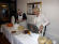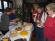 Pünktlich um 14:00 Uhr waren dann auch die ersten Gäste da, und wenig später saßen sie und genossen Friesentorte und eine Tasse heißen Kaffee. Schnell aber füllte sich der Saal. An den Tischen sah man fröhliche Gesichter beim Klönen und von den Kuchentellern köstliche Torten mit Schokonuss, Marzipan, Weincreme oder Quarksahnekreationen Gabel für Gabel genüsslich verschwinden. Kirschstreusel, Frankfurter Kranz, Puffer und schwäbischer Hefekranz mit Mohn bereicherten das reichhaltige Angebot der zahlreichen selbstgebackenen Torten und Kuchen. Wer lieber oder zusätzlich Futjes wollte und statt nur Kaffee lieber Pharisäer, alle Geschmackwünsche konnten erfüllt werden. Auch gab es natürlich selbst gebackenes Brot mit Eiderstedter Käse von der Osterhusumer Meierei aus Witzwort oder selbst zubereitetem Griebenschmalz, köstlich verfeinert mit Zwiebel, Apfel und Majoran.