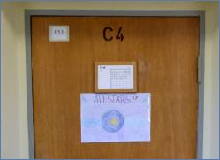 Abschließende Aufgabe war in diesem Fall jeweils die Gestaltung einer Fahne. Jede Klasse hatte dafür einen Namen zu finden und ein Tier zu wählen. Zum formalen Klassennamen kam nun eine eigens von allen für ihre Klasse entwickelte Fahne mit Namen wie die „Klassenkönige“ mit dem Skorpion als Tier, die „All-Stars“ mit dem Delphin oder die „Haunted-Group“ mit dem Pandabären. Diese Fahnen zieren jetzt die Türen zu den jeweiligen Klassenräumen.