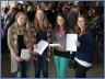 In den Schlussbildern erhalten einige Schülerinnen und Schüler aus den Grundschulen für ihre erfolgreiche Teilnahme am Quiz über die Nordseeschule von den Lehrkräften Jessica von Heidler und Levka Thomsen im Beisein von Schulleiter Matthias Ramm eine Urkunde und ein kleines Präsent. Alle durften sich dann noch aus der „Leinentasche“ bedienen.