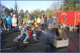 So viele Menschen – wir sind ziemlich beeindruckt. Am Ende des Abends versammeln wir uns dann vor dem Rolltor der Waschstraße. Mit einem Ventilator wird der Rauch der Übung auf den Hof geblasen. Und als der Jugendfeuerwehrwart Tobias Thomsen aus dem Nebel tritt, ruft einer unserer Jungs: „Hilfe, die Marsmännchen kommen doch!“.