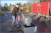 Und dann wurde der Feuerlöscher unter Anleitung von allen Schülern ausprobiert! Der Schulleiter und die Lehrerinnen durften auch mal löschen.