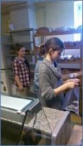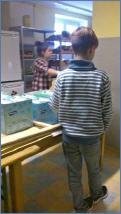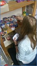 Neben dem Einsortieren der mitgebrachten Waren beinhaltete der Aufenthalt im Gebäude der Diakonie auch die Hilfe bei der Verteilung der Lebensmittel. Mit ausführlicher Einweisung und Unterstützung der Helferinnen und Helfer der Tafel wurden eifrig Brot, Spaghetti, Konserven, Frischwaren wie Eier und Fleisch, Kuchen, aber auch Obst und Gemüse und sogar Blumen an insgesamt 35 Menschen verteilt. Zwischendurch gab es genug Möglichkeiten, die vielen Fragen zu stellen, die schon vor dem Ausflug aufgekommen waren. So bekamen die Schülerinnen und Schüler einen Überblick über die wichtige Arbeit der Tafeln.