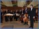 Nach den ersten Klängen des Orchesters, dem dann zunächst leise einsetzenden „Stabat Mater dolorosa“ des Chores und den Soli, beginnend mit der Tenorstimme, war aus der mit weißen Stoffbahnen verhängten Sporthalle mit den seitlich vom Orchester stehenden Lorbeerbäumen ein echter Konzertraum geworden. Die zunächst etwas ungewohnte Atmosphäre wurde nicht mehr wahr genommen. Die bewegende melodiös und klangvoll kompositorisch gestaltete mittelalterliche Sequenz aus der Marienklage verfolgte das aufmerksame Publikum andächtig.