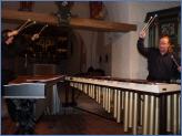 Nun war das von Anfang an begeisterte Publikum richtig eingestimmt auf diese Art Musik. Es folgte mit den „Bildern einer Ausstellung“ (1874) von Modest Mussorgski (1839-1881) ein den meisten durch die 1922 erfolgte Orchestrierung von Maurice Ravel (1875-1937) wohl sehr bekanntes Stück. Matthias Krohn hatte 1997 die Idee, diesen Klavierzyklus für zwei Marimbas zu bearbeiten und trat damit an Andreas Schwarz heran. In den 1980er Jahren hatten sie sich im Studium an der Lübecker Musikhochschule kennen gelernt. Beide pflegten sie dort jeder für sich ihre intensive Beziehung zur Marimba. Damals galt das Spielen dieses Instrumentes selbst unter klassischen Schlagzeugern als „exotisch“. Das Nationalinstrument von Guatemala stammt ursprünglich aus Afrika.