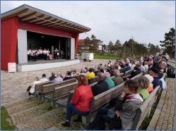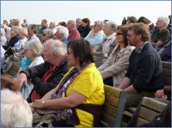 Begleitet von Akkordeon, Bass und Kongatrommeln begeisterten die 24 Shantysänger wieder einmal ihr immer neues Publikum. Manche aber kommen extra deswegen auch wiederholt zum Dünenhus. Dieses Mal lud auch das warme Aprilwetter regelrecht dazu ein.
