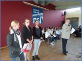 Der Schulleiter machte „seinen Jüngsten“ bewusst, dass sie nun auch 20jährige Schulkameraden haben würden. Die gelte es außer den Lehrkräften und dem Schulpersonal zu respektieren. Als Tipp gab er ihnen den Rat einer ehemaligen Fünftklässlerin:“Wir sind einfach nett zu den Lehrern; dann sind die auch nett zu uns.“- Er verglich die Aufnahme in die Nordseeschule mit dem Aufstieg in eine neue Liga: Es würde wiederholt und geübt, aber Neues käme hinzu und die Anforderungen stiegen. Er informierte dann in Kürze umfassend über das umfangreiche und besonders in der Schulsozialarbeit personell mit Mattias Goetzke verstärkte Angebot, die Arbeit von Thekla Prokop und der Präventionskraft Sandra Philippsen ergänzend und erweiternd. Der Schulverband Eiderstedt trägt dafür die finanziellen Lasten. Er warb in diesem Zusammenhang für die Angebote der Offenen Ganztagsschule von Montag bis Donnerstag im Sinne einer verbesserten Betreuung - eine dem Hort ähnliche, aber stärker schulbezogene Einrichtung mit Hausaufgabenhilfe – und die Teilnahme an den Arbeitsgemeinschaften, z.B. in Sport und Musik aber auch an den anderen Angeboten wie in der Sozial AG. In den AGs könne man viel und anders lernen. Sie sollten nicht als Belastung verstanden werden, sondern als eher aktive Entspannung vom Vormittagsunterricht.