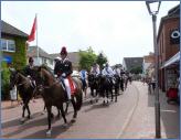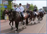 Feldführer Conrad Klützke ritt wie üblich auch dieses Jahr mit dem Landschaftskönig an der Spitze. Das ist dieses Jahr der Witzworter Jan Sievers. Erst vor 14 Tagen war er in Tönning zum Landschaftskönig gekürt worden. Er war zugleich „König der Könige“ aus 2013. Der Spielmannszug Wesselburen führte das gesamte Feld an.