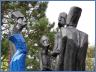 Schon im Vorgarten empfingen die beiden oder auch nur die eine Installation von Nando Kallweit die Besucher. Sieben Skulpturen, mit einer Kettensäge aus Holz geschaffen, standen hoch aufgereckt im Vorgarten. Waren es Wächter oder Richter oder einfach nur Gruppen von Menschen, die an vergangene Zeiten erinnern sollten? Und warum war die kleinste Figur in der Fünfergruppe blau und alle anderen schwarz? Sie regten zum Nachdenken an. Von ihnen inspiriert trat man in den Flur und die drei Räume. Auch hier Plastiken und Skulpturen von ihm, doch weitaus zierlicher, aber einige denen im Vorgarten ähnlich und mit ihnen durch das Fenster korrespondierend.