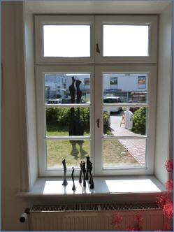 Gut ausgewählt, gemacht, angeordnet, gestellt und gehängt. Es passte, das Haus mit seinem besonderen Steinschmuck und der Ort gegenüber der Dünen-Therme. Ein gelungenes Experiment!