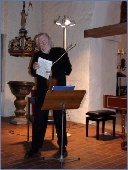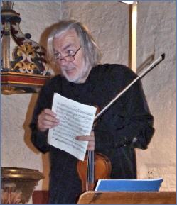 Von diesem anspruchsvollen besonderen Konzert mit Wolfgang Kohlhaußen an der Violine und Christoph Jensen an Orgel und Cembalo in der St. Peter-Kirche blieb wohl vor allem die Interpretation der Komposition von Wilfried Maria Danner (*1956) haften. Dieser hatte zum letzten Gedicht aus dem sechsteiligen Zyklus „Der Geiger“ von Hermann Hesse unter dem Titel „...voll tiefen Friedens...“ seine Komposition aus dem Jahre 2010 dazu mit „Momentaufnahmen, Szenen und Fragmente“ für Violine solo benannt. Hesse zeigt in diesem Zyklus die fortschreitende Ernüchterung eines einst vom Geigenspiel verzückten Virtuosen über den Wert seiner Kunst sprachlich verdichtet auf.