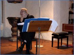Mit großem Interesse wurde seine Interpretation nun erwartet und höchst konzentriert und angespannt versuchten die Zuhörer zu verstehen und zu hören, was und wie Danner diesen Text von Hesse musikalisch gesetzt hat und wie Kohlhaußen dieses dann auf seiner Geige umsetzte. Schon der Text lässt erahnen, dass hier Konflikte ausgetragen werden. Voller Konzentration widmete sich Wolfgang Kohlhaußen seiner Interpretation. Mal mit dem Bogen die Saiten kaum berührend, war doch ein Ton vernehmbar. Dann klang eine Melodie an, hörte abrupt auf. Kräftige Töne folgten.- Die Komposition stellt hohe Ansprüche sowohl an den Interpreten als auch an die Zuhörer. Dankbar für die Annahme des Werkes und den erwiesenen Beifall für die musikalische Darbietung, wandte sich Kohlhaußen, seine Geige und die Noten in der Hand, dem Publikum zu. Seine verinnerlichte Konzentration war noch spürbar.