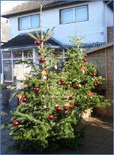Doch wir hellen uns diese dunkle Jahreszeit auf. Kaum ist der erste Advent da, zeigt sich das Dorf heimelig mit dem Weihnachtsschmuck. Zu den leuchtenden Weihnachtssternen gesellen sich dieses Jahr in der Dorfstraße in lockerer Reihe immer wieder die mit Lichterketten geschmückten kleineren Tannen. Natürlich fehlt der große Lichterbaum beim Rondell mitten im Dorf nicht, wie auch der schon traditionelle Weihnachtsschmuck bei den Stöpen und Jan un Gret nicht.- Weitere große Lichtertannen sind beim Kinderspielhaus, am Kreisel beim Wischer-Platz, im Bad, an der Einmündung der Pestalozzistraße in die Böhler Landstraße, auf dem Bolzplatz Westerleye und auf dem Gelände des Jugenderholungsdorfes aufgestellt.