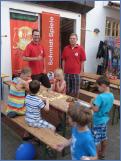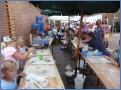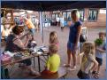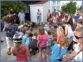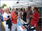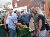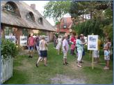 Petrus meint es diesen Sommer besonders gut. Das war auch am vierten Donnerstag im Dorf zu spüren. Es wurde voll und gerade für Kinder war wieder richtig was los. Henner Wachholtz mit seinem „Küsten Explorer“ hatte seinen Stand mit Ausstellungsstücken und interessanten Wissensbüchern über Watt, Tiere, Sand und Meer aufgebaut. Man konnte ihm Fragen stellen oder sogar Bücher gewinnen, wenn man seine Fragen richtig beantwortet hatte. Rundherum auf dem „Kinderhofplatz“gab es für alle Altersstufen etwas: Hüpfburg, Bernsteinbearbeitung, Bernsteinsuche im Sand und Schmidt-Spiele. Kinderflohmarkt gab es noch in Richtung Stöpe. Auf dem Wege dahin konnte man sich schminken lassen, begegnete dem Seifenblasenmann und der Zopfflechterin. Und sogar alte Trecker konnte man bestaunen.