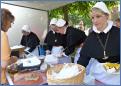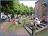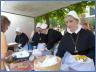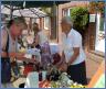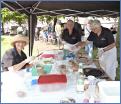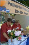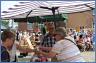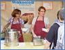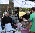 Bei etwas weniger Wärme hätte man sicher noch mehr Appetit gehabt, aber auch so gingen köstliche Torten und Kuchen, echte Futtjes, herzhafte Mettwurstbrote und leckere Matjesbrötchen über die Tresen. Boddermelk mit Klümp, Wiensupp mit Schinken, Mehlbüdel fanden ihre Leckermäuler. Schon nach nicht einmal einer Stunde hatten die Frauen vom Hospizdienst Eiderstedt ihren „Mehlbeutel mit Kirschsoße und Kasslerbauch“ verkauft!
