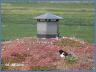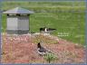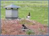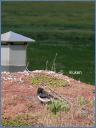 Auf dem Gründach der Blockhaussauna nistet ein Austernfischerpäärchen.