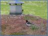 Montagmorgen , 07. Juli, ließ es mich keine Ruhe. Mal sehen was sich auf der Blockhaussauna getan hatte. Glück! Sie war da, stand aber. Zwei Küken!- Dann ertönte plötzlich mehrfach hintereinander das typische „Quié-wieph“. Noch mehr Glück?- Er musste wohl kommen und kam dann auch hinter der Entlüftung hervor, mit einem „Wurm“ im Schnabel. Fütterung der beiden Küken! Dann entfernte er sich schnell wieder. Sie blieb mit ihren beiden Küken zurück. Sicher würde er bald wieder kommen und sich mit „Quié-wieph“ ankündigen.