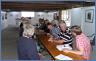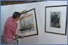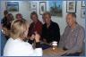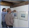 Anschließend setzte man sich mit allen Helfern zu einem Organisationstreffen besonders für die heutige Vernissage zusammen, aber auch zur Vorbereitung auf die kommenden Wochen. Schließlich wollen einerseits diejenigen, die die Aufsicht übernommen haben, über die Kunstwerke informiert sein, um den Kunstinteressierten auch Auskunft geben zu können, andererseits möchten auch die Künstler, dass das in ihrem Sinne geschieht. So berichteten sie informativ zu ihren Werken.