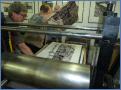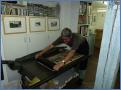 Wer dann noch erlebte, wie Manuel Knortz und Reinhard Scheuble bei den Vorbereitungen und dem eigentlichen Drucken eines Holzschnittes miteinander arbeiteten oder wie Gisela Mott-Dreizler mit Unterstützung ihres Mannes einen Dreifachdruck fertigte, mit welcher Hingabe und Sorgfalt sowie scheinbarer Leichtigkeit das alles geschah, der nahm auch gedanklich einen bleibenden Kunsteindruck vom Druckhandwerk mit.