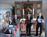 Der kleine Kirchenraum auf der hohen Warft eignet sich vorzüglich für eine kleine Besetzung. Die Akustik ist ausgesprochen gut. Das bedeutet aber auch, dass jeder noch so geringe Fehler hörbar ist. Doch bei diesen drei Meistern ihrer Instrumente war das nicht zu befürchten.