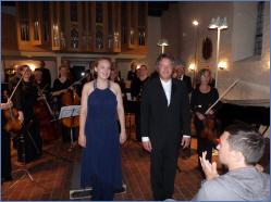 Manch Zuhörer wird sich im Nachhinein gefragt haben, ob er das schon einmal so erlebt habe. Beide Kompositionen waren sicher den meisten bekannt, man hat sie vielleicht sogar wie an diesem Abend nacheinander gehört.- Es war aber einfach viel mehr, was dieses Sinfoniekonzert nachklingen lässt. Da war die virtuose Solistin, die mit ihrer gesamten Persönlichkeit Mozarts Musik zum Klingen brachte. Nachdenklich, hingebungsvoll, romantisch, energiegeladen faszinierte sie mit ihrem Spiel. In den Kadenzen des ersten und dritten Satzes war das besonders spürbar. Kaum bemerkbar war der seltene Blickkontakt mit Christoph Jensen. Der wiederum und das Orchester waren mit ihrer Solistin eins. Auch hier spürte man die volle Bereitschaft, das eigene musikalische Können exzellent einzubringen und die Aufführung des Klavierkonzertes höchst vollendet zu gestalten und zu einem jubelnden Ende in D-Dur zu führen.- Lang anhaltender, begeisterter Beifall! Keineswegs laut, aber umso herzlicher! Bezaubernd das Lächeln der Solistin, mit dem sie sich beim Publikum bedankte!