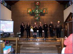 Das Angebot in der St. Ulrich-Kirche (ab 20:00 Uhr mit Pause vor 21:00 Uhr) hatte wohl die meisten Besucher angelockt. Hier bot „Viddel 12“ ein Konzert mit christlichen Songs, Gospel und Balladen unter dem Titel „Here I am to worship“ (Anbetung, Verehrung, Gottesdienst). Der Kontakt mit dem Leiter Lukas Henke der Musikgruppe aus Bremervörde hatte sich über Diakonin Andrea Streubier von der Urlauberseelsorge ergeben. Er führte fröhlich erläuternd durch das Programm. Als er ‚Lichter leuchten hell in die Dunkelheit‘ als Weihnachtslied ankündigte, schmunzelte das Publikum. Die Gruppe begeisterte, lud zum Mitsingen und Klatschen ein. Glaubensbekundung der fröhlichen und auch besinnlichen Art.