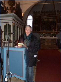 In Tating (ab 20:00 Uhr) heet Gudrun Fuchs de Besöökers al hartli willkaam in de St. Magnus-Kark. Selbst die Orgel schien dann zum Eingang mit dem Praeambulum in d-moll von Matthias Weckmann (1616-1674) beim Spiel von Organist Gunnar Sundebo aus Wesselburen plattdeutsch zu klingen. Das meinte jedenfalls Pastor Ralf-Thomas Knippenberg aus Garding. Er las an diesem Abend plattdeutsche Geschichten von Rudolf Kinau im Wechsel mit Gesang von plattdeutschen Kirchenliedern ut dat Plattdüütsch Gesangbook „Op goden Kurs“. So süng de lüttje Gemeen denn ok ierst „Gah rut mien Hart un söök di Freud“. Denn güng dat mit de Lesung von „Ingelsch spraaken“ in Wessel vun Gesang un Lesung wieder.