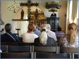 So’n plattdüütschen Gottesdeenst is ni veel anners as een in Hochdütsch. War’t blots in Platt snackt un sung’n, natürli ok preedigt. Beed wor ok. Dat’s jo klaar. Dat fung an mit een Leed, dat jed‘een kinnen deit: „Priest Gott den Herrn, ji Minschen all!“ (op Hochdüütsch: „Nun jauchzet dem Herrn alle Welt“) un höörte op mit dat schööne Leed vun Paul Gerhardt „Gah rut, mien Hart, un söök di Freud“. Dat dään wi so üm de fofti Karkenbesöökers denn ok na dat Orgelnaaspeel von Karkenmusikdirektor Christoph Jensen mit dat „Concerto D-moll“ ut dat Husumer Orgelbook vun 1758.