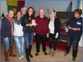 So war es kein Wunder, dass fast alle der Einladung zu ihrer „Abschiedsveranstaltung“ gefolgt waren. Wer konnte da schon widerstehen:“Ik jeh ma wieda na Hause unt will dir unt eusch rischtisch Schüss sagn, wa?!“ Gerne sagten sie ihrer „Steffi“alle „Schüss“ mit lachendem und mit weinendem Auge. Mitgebracht hatte auch jeder etwas. So wurde es eine richtig schöne Party. Nicole Henfling vom Kinderspielhaus hatte Stephanie Pohlmann mit launigen Worten für das Team der TZ verabschiedet. Zum Rundflug über die „Heimat Eiderstedt“ gab es erforderliches Zubehör und für den Start in Berlin eine Schatzkiste mit Goldtalern, denn: „In Berlin gibt es ja nischt!“ Johann Stauch überreichte ihr zur Erinnerung an ihren Einsatz für die DLRG und St. Peter-Ording einen Strandkorb in Miniaturausgabe.