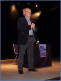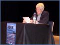 Zur Abschlussveranstaltung am Sonntagnachmittag war Hannes Nygaard mit seinem 25. Krimi „Flut der Angst“ in das Dünen-Hus nach St. Peter-Ording gekommen. Es war nicht das erste Mal, dass er hier zu Gast war. Wer nun gedacht hatte, er würde gleich mit seinem Roman beginnen, der hatte sich geirrt. Er wandte sich an sein Publikum, freute sich, alle seine Leser vor sich zu sehen, und unternahm als Fast-Polit-Comedian einen Ausflug in die aktuelle Tagespolitik des Landes, erinnerte an das gegen Polen verlorene Länderspiel, kam zum HSV und über die Raute zur Bundeskanzlerin. Er stellte dann aber durch direktes Fragen fest, dass die meisten der sechzig anwesenden Krimi-Fans nicht aus St. Peter-Ording kamen. Er tröstete sie: „Wir Nordfriesen sind nett und freundlich zu den Gästen. Manchmal bringen wir sie auch um.“ Typisch Hannes Nygaard! Auf einem scheinbaren Umweg und amüsant führt er seine Zuhörer und Leser zum „Tatort“.