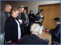 So auch in seinem neuen Krimi. Er beginnt dieses Mal direkt in Husum und am Hafen. Es gibt zwei Tote und es gibt Machenschaften. Von Husum geht es nach Hannover, nach Brunsbüttel, Cuxhaven und Wischhafen, an die Elbe und an die Oste. Es geht um Containerschiffe, um einen Beamten der EU. Mitarbeiter einer US-Sicherheitsfirma tauchen auf. Trecker sind bei Nebel auf Verfolgungsfahrt im Watt vor Neuwerk unterwegs. Fünf Polizeibeamte haben richtig zu tun. Schwierig genug ist die Aufklärung der beiden Mordfälle.- Genau deswegen führt Nygaard in seinem Roman die Protagonisten seiner bisherigen Krimis Christoph Johannes und Wilderich Große Jäger aus Husum, Lüder Lüders vom LKA Kiel, Frauke Dobermann und Jakob Putensenf aus Hannover zusammen. Das kann bei solch unterschiedlichen Charakteren mit deren Art von Kommunikation und Interaktion nicht ohne zusätzliche Komplikationen abgehen. Unweigerlich erhält der Leser bei „Flut der Angst“ neben politischen und wirtschaftlichen Themen heitere und vergnügliche Krimikost mit viel Lokalkolorit.- Dass Nygaard mit seinem neuesten Krimi den Geschmack der Zuhörer getroffen hatte, bewiesen anlässlich seines Vortrages die Gluckser und Lacher. Erstaunlich auch, wie viele Bücher er signieren konnte.