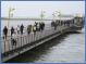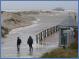 22. Oktober 2014 (hjr) Auch wenn man nicht vom Deich wehte. Der Sturm war stark genug und kam aus der richtigen Richtung, um alle Strände in St. Peter-Ording unter Wasser zu setzen. Die Wege waren überflutet. Die Pfahlbauten waren wellenumspült. Schaum hatte sich vor allem an der Überfahrt Ording abgesetzt. Genau um die Mittagszeit um 13:03 Uhr war laut Tidenkalender Hochwasser. Morgen ist Neumond. Die Flut wäre bei Vollmond sicher höher aufgelaufen. Und gut war es, dass die Mitarbeiter der Tourismus-Zentrale rechtzeitig mit den Herbstarbeiten begonnen hatten. Die Treppen zu den Pfahlbauten sind noch abzubauen, sonst ist fast alles erledigt.
